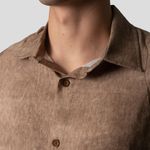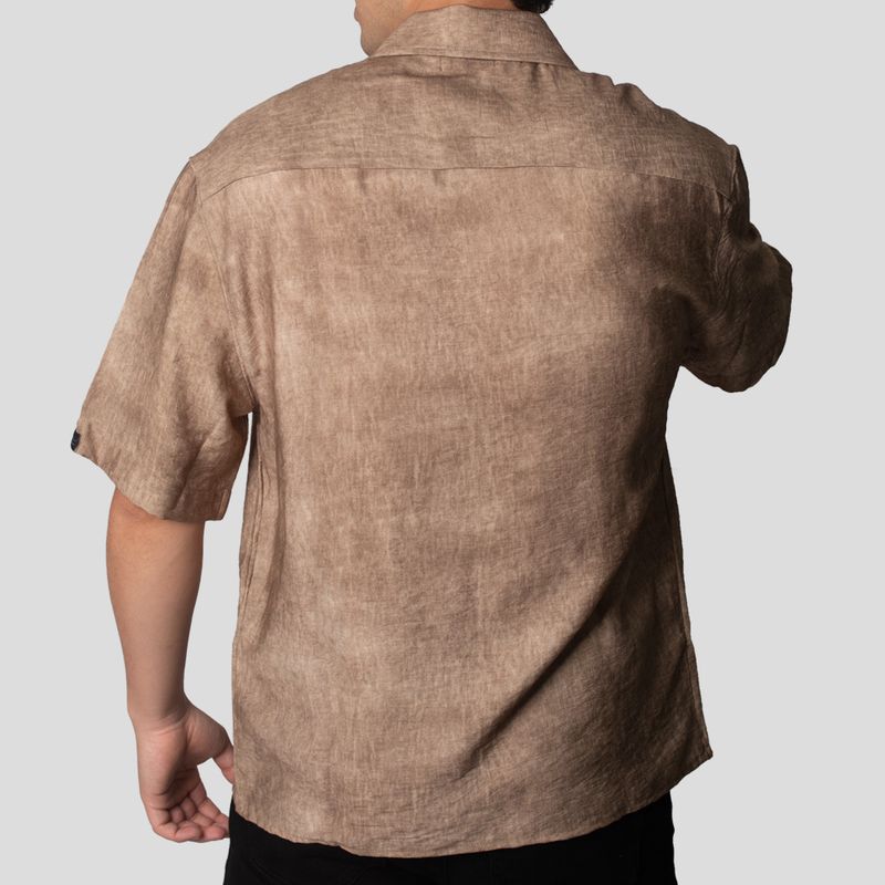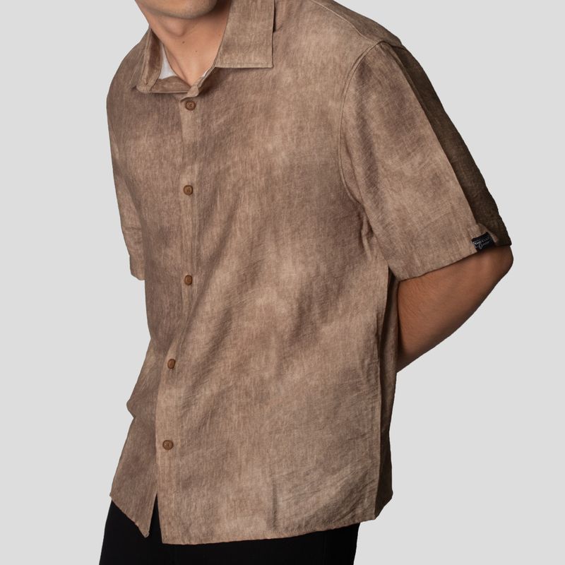 Camisa manga corta de estética **Earth Edition**, diseñada en un tejido camisero liviano, con textura jaspeada que aporta un carácter natural y moderno. Su cuello clásico mantiene la estructura y el estilo limpio, mientras el entalle **Relax Fit** ofrece amplitud controlada y una caída precisa que complementa looks minimalistas, artesanales y tonos tierra.