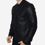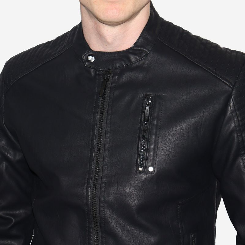 ✔ Casaca de cuero ecológico con estilo motociclista y corte moderno