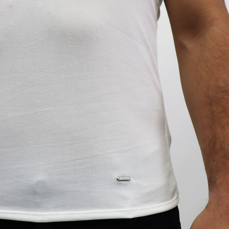 Polo cuello redondo manga corta Tejido especial microbrush Perfect Fit - MARFIL