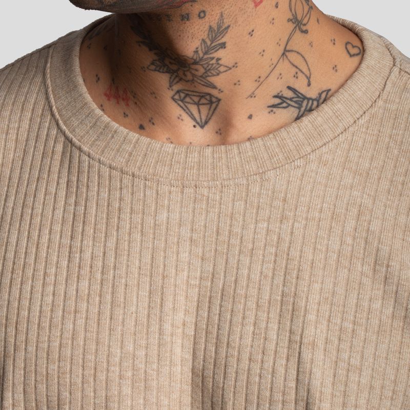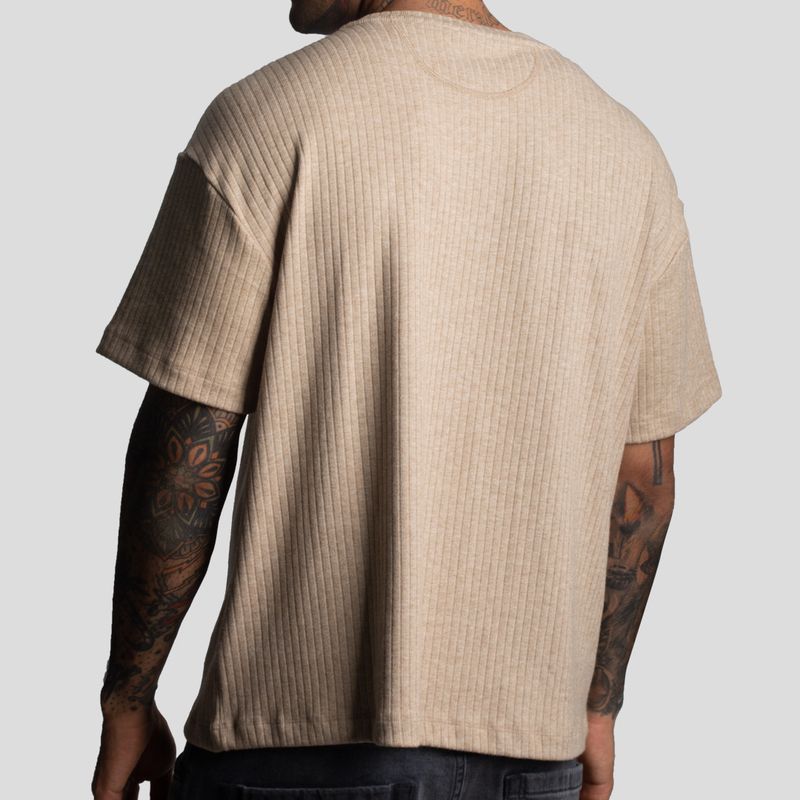 “Polo confeccionado en un **tejido especial de alto gramaje**, con **acabado acanalado jaspeado y ranuras gruesas en relieve**, que aporta textura, carácter y una presencia sólida al look. Su **Relax Fit** ofrece una silueta amplia pero equilibrada, ideal para un estilo **post-streetwear minimal**, cómodo y contemporáneo.
