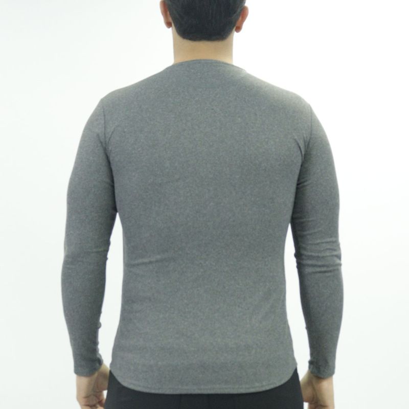Polo manga larga cuello redondo acanalado Perfect Fit - PLOMO