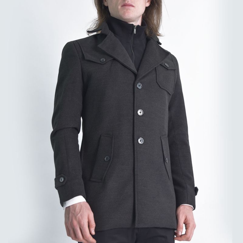 Saco paño con pechera cuello alto extraible Perfect Fit - PLOMO