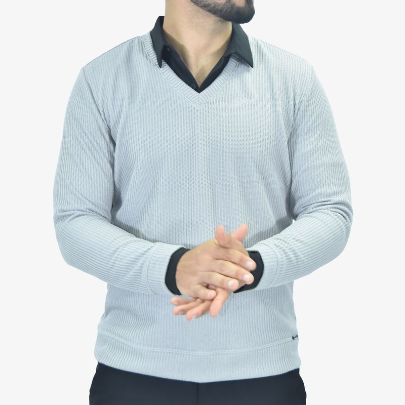 Diseñado para el hombre moderno que valora el confort sin sacrificar estilo, este suéter cuello ‘V’ de tejido especial combina funcionalidad y elegancia.